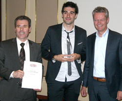 DuPont Chemicals & Fluoroproducts (DC&F) a décerné à Sébastien Alazet le Fluorine Chemistry Student Award 2015, récompensant ainsi ses réalisations exceptionnelles dans le domaine de la chimie du fluor. Ce prix, dont il s’agit de la première édition, s’adresse aux étudiants de niveau Master ou Ph.D. ainsi qu’aux jeunes professionnels de la région Europe, Moyen-Orient et Afrique (EMEA) ayant clairement fait preuve d’excellence dans leur activité de recherche dédiée à la chimie du fluor. Comprenant un certificat et une somme de 1500 €, il a été remis au lauréat par Marcel Vandennoort, Directeur de DC&F Europe, et Martial Pabon, membre du jury et Responsable R&D et Innovation EMEA de DC&F, lors d’une cérémonie organisée par DuPont en marge du salon ACHEMA de Francfort. Les candidatures ont été évaluées par un jury international composé de plusieurs experts. L’excellence du programme de recherche et la portée internationale de celui-ci ont fait partie des critères d’évaluation.
