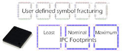 L’assistant de conception de pièces par « ECAD Part Wizard » donne aux ingénieurs conception le contrôle total du processus de " fracturing" de symboles de schéma. Cela comprend le nombre de fractures à créer, le placement des broches autour de chaque fracture (gauche, droite, haut et bas), et l’ordre dans lequel chaque broche est affichée. De plus, EPW fournit les empreintes des composants et la topologie de la carte PCB, tous compatibles IPC avec possibilité pour l’utilisateur de sélectionner les options d’empreintes minimum, nominales et maximum.