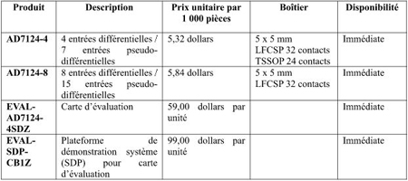 Grâce à leurs performances de pointe en matière de consommation d’énergie, ces composants conviennent idéalement à une large gamme d’applications industrielles et d’instrumentation telles que les équipements portatifs basse consommation. Le haut niveau d’intégration des frontaux analogiques AD7124-4 (quatre entrées différentielles et sept entrées pseudo-différentielles) et AD7124-8 (8 entrées différentielles et 15 pseudo-différentielles) simplifie l’architecture des projets et raccourcit le cycle de conception en apportant la flexibilité nécessaire pour gérer facilement plusieurs types d’entrées de capteurs. Parmi ces entrées figurent les détecteurs de température à résistance, thermocouples, entrées tension/courant et autres ponts de courant. En offrant une densité de canaux système supérieure à tous leurs concurrents, ces nouveaux frontaux analogiques permettent aux concepteurs de réduire l’encombrement de la carte électronique ou d’utiliser l’espace économisé pour étoffer les fonctions de surveillance et de connectivité dans la même partie de la carte.