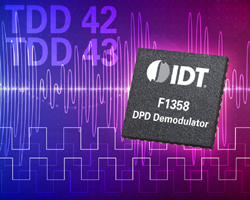 "Comme ses prédécesseurs F1370 et F1320 pour les bandes de fréquence inférieures, le démodulateur de pré-distorsion numérique F1358 constitue la référence ultime en matière de performances, pour les concepteurs RF TDD, gràce à son haut niveau d’intégration, et à son potentiel de réduction des coûts, de l’encombrement et de la consommation", affirme Chris Stephens, Directeur Général de la Division RF d’IDT. "C’est une solution parfaite et très souple pour linéariser des stations de base d’émission-réception de systèmes TDD entre 3 et 4 GHz".