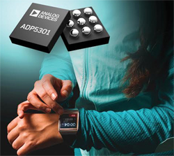 Avec un taux de rendement de 90 %, et une consommation de 180 nA seulement en courant de repos, le régulateur abaisseur ADP 5301d’Analog Devices est conçu pour offrir une puissance maximale pendant plus longtemps. Il convient donc parfaitement aux applications de l’Internet des Objets, aux réseaux de capteurs sans fil et aux terminaux portables comme les bracelets de fitness et les montres connectées.