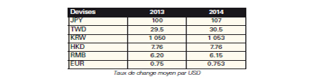 change entre 2013 et 2014 a été mineure. Le Yen japonais