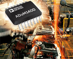 Dans le domaine industriel, les bras robotisés destinés aux opérations de grande précision sont quant à eux utilisés dans des environnements très sévères. Les communications modernes à haut débit, nécessaires à l’automatisation des chaînes de production, doivent être isolées du bruit électrique qu’engendrent notamment les opérations de soudage à l’arc et autres équipements, afin d’éviter toute interférence dans les signaux. Les isolateurs numériques iCoupler d’ADI assurent une immunité élevée au bruit et s’avèrent plus efficaces que les options précédemment retenues pour assurer l’intégrité des signaux. Les éléments d’isolation ADI offrent des performances exceptionnelles et un niveau d’isolation galvanique éprouvé, avec plus de 1,4 milliard de canaux déjà livrés. En combinant les circuits CMOS à hauts débits, la technologie monolithique des transformateurs à noyau d’air, et une architecture de modulation en tout-ou-rien - On-Off-Keying (OOK), ces isolateurs de nouvelle génération offrent le plus haut niveau d’immunité au bruit aujourd’hui disponible, le niveau d’interférences électromagnétiques (EMI) le plus faible, et la plus grande protection contre les surtensions, permettant ainsi de répondre aux besoins d’un marché élargi. De multiples produits sont désormais en production, offrant diverses configurations en termes de boîtiers et de nombre de canaux.