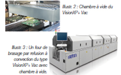 Afin d’obtenir un rendement plus élevé et une meilleure intégration aux lignes SMD, des solutions technologiques plus adéquates se sont avérées nécessaires. Avec la combinaison d’un four de brasage par refusion à convection de la gamme VisionXP+ et d’une chambre à vide, le savoir-faire déjà bien maîtrisé dans ces deux techniques a été enfin réuni en une nouvelle option pour ce type de four.