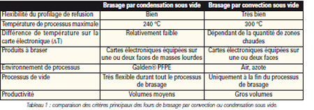 de brasage diffèrent. Le tableau 1 compare quelquesuns