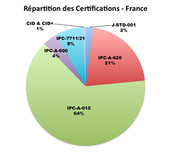Toutes certifications confondues, 204.500* personnes sont certifiées IPC dans le monde dont 25 % en Europe. La certification la plus répandue est de loin l’IPC-A-610 « Acceptabilité des assemblages électroniques ».