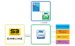 L’accent mis par VIA sur l’efficacité de la consommation au niveau du silicium a permis l’intégration de tous ces composants (chipset, contrôle mémoire, IGP, périphérique et connectivité réseau) sans oublier la fonctionnalité multimédia, tout cela dans une solution mono-puce, comme le processeur multimédia VIA VX800, permettant d’ajouter un accélérateur graphique discret sans faire exploser l’espace sur la carte ou le poste consommation. Les OEM peuvent ainsi proposer des machines plus puissantes, avec du graphisme 3D et des performances vidéo HD supérieures aux actuels nettops, netbooks ou appareils embarqués.