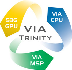 La plate-forme VIA Trinity associe un processeur VIA basse consommation comme le processeur VIA Nano avec un des chipsets multimédia hautement intégrés de VIAauxquels on ajouter la puissance d’un GPU discret PCI Express S3 Graphics pour loger les dernières technologies x86 dans les plus petits espaces.
