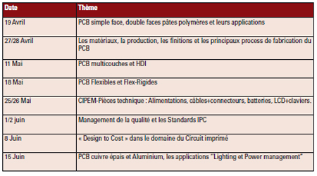« Avec cette organisation complète et conscient de notre responsabilité, nous avons intégré, dès l’an passé, une organisation technique afin d’apporter encore plus de support et d’expertise auprès de nos clients. » ajoute Loic PASCO - Directeur Technique & Marketing. « Nous avons depuis plusieurs mois analysé et structuré les besoins du marché. Nous avons sélectionné 8 thèmes principaux que nous présenterons lors de nos conférences techniques. Chaque conférence sera préparée et animée par l’un de nos experts en circuits imprimés ou pièces techniques. »