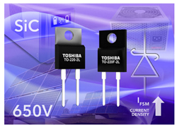Les premiers produits de cette famille de 2ème génération seront des dispositifs 650V avec des courants nominaux de 4A (TRS4E65F), 6A (TRS6E65F), 8A (TRS8E65F), et 10A (TRS10E65F) en boîtiers TO-220 à 2 broches et TO-220 isolé à 2 broches, dénommés TRS.A65F. Ces diodes seront parfaites pour les circuits de conversion d’énergie à commutation rapide, notamment les circuits PFC (Power Factor Compensation, ou correction de facteur de phase), les inverteurs photovoltaïques et les alimentations UPS (Uninterruptible Power Supply, ou onduleurs). Les SBD SiC Toshiba peuvent aussi servir à améliorer le rendement des alimentations à découpage, en remplaçant les diodes silicium conventionnelles.