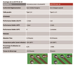 Véritable innovation sur le marché des crèmes à braser : Henkel a développé la première crème à braser stable en température. La LOCTITE GC 10 est stable à 26.5°C pendant un an et jusqu’à 40°C pendant un mois, ce qui représente de nombreux avantages en logistique et en production – depuis la réception jusqu’à la sérigraphie et la refusion.