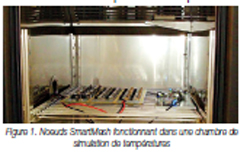 Par ailleurs, le banc de test de réseau est équipé d’instruments permettant de collecter des paramètres de performance, dont la consommation moyenne de chaque noeud, le débit de données et le délai de transit du réseau (le temps qu’il faut à un message pour parcourir le réseau). Le banc de test de réseau injecte des données de capteurs en provenance de tous les noeuds sans fil dans le réseau pour mesurer le délai de transit et pour caractériser la capacité du noeud de passerelle à gérer le trafic. Ces tests sont répétés pour des configurations de réseau optionnelles, telles qu’en mode faible délai de transit ou avec un trafic de réseau bidirectionnel plus important. Enfin, le banc de test de réseau simplifie le processus d’essai sous contraintes permettant de vérifier la capacité du réseau à supporter les conditions problématiques. Ces tests introduisent systématiquement de l’activité au niveau des différents noeuds du réseau subissant le test, dont la désactivation de noeud pour vérifier que les noeuds voisins restants ne perdent jamais de paquet. D’autres tests sous contraintes mettent en oeuvre des pannes de noeuds généralisées pour mettre à l’épreuve la capacité du noeud de passerelle à rediriger le trafic et à consolider le réseau lorsque de vastes sections de réseau sont altérées. La surveillance et la commande de systèmes essentiels à l’activité de l’entreprise étant généralement confiées à un WSN industriel, un tel processus de test permet de vérifier que ce dernier est prêt à parer à toute éventualité.