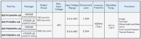 Série de convertisseurs Flyback BD7F100 jusqu’à 5 W