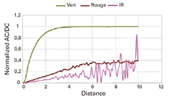 Comme indiqué précédemment, pour maximiser l’index de modulation et, par suite, la qualité du signal mesuré, il faut respecter un écartement minimum entre LED et photodiode. Ce qui ne peut être optimal dans un module, où l’espace est compté. Aussi, pour les applications de type montre sportive, avec les contraintes supplémentaires liées au mouvement, à la transpiration et au déplacement du contact montre-peau, les solutions avec LED et photodiode externes au frontal photométrique sont recommandées. L’ADPD105/106/107 améliore de 12 dB le SNR par rapport à l’ADP103, il est donc le plus fortement recommandé pour cette application. Il est recommandé également d’exécuter un algorithme de compensation de mouvement sur le microcontrôleur, ainsi que de synchroniser les données du front end optique avec celles de l’accéléromètre.