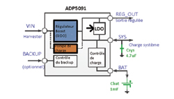 Grâce à sa conception unique, le circuit ADP5091 compte parmi les PMU à récupération d’énergie ayant les meilleurs rendements du marché, en convertissant l’énergie captée allant de 16 μW à 100 mW, avec une consommation propre inférieure au μW (son Iq est au maximum de 450nA). Le circuit ADP5091 présente également, à ce jour, le temps de démarrage à froid le plus court par un mécanisme astucieux de charge avec deux capacités de taille différente.
