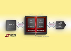Linear Technology Corporation présente les LTM2893 et LTM2895, des isolateurs µModuleâ(micromodule) à interface SPI (interface périphérique série), optimisés pour la famille, en pleine expansion, de convertisseurs de données, aux performances élevées, de Linear Technology. Les LTM2893 et LTM2895 fonctionnent à des vitesses d’horloge de l’interface SPI pouvant atteindre 100MHz, plus du double de la limite optimale de 40MHZ des isolateurs numériques actuels et permettant l’emploi de convertisseurs de données de plus haute résolution et de vitesse plus élevée, tout en maintenant un fonctionnement sans état de latence. Avec une interface rapide SPI, un isolement galvanique et des signaux de contrôle supplémentaires, rapides, les LTM2893 et LTM2895 ne requièrent pas de composants externes et procurent une mise en œuvre de µModule simple pour les communications par convertisseurs de données isolés.