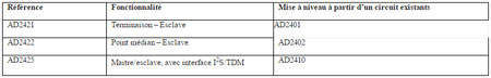 Les nouveaux périphériques de la série AD242x sont immédiatement disponibles en boîtier LFCSP à 32 broches. De plus, des cartes d’évaluation maître et esclave, ainsi que des cartes d’évaluation fournissant une fonction d’alimentation fantôme et locale, sont immédiatement disponibles. Tarifs sur demande auprès de votre bureau ADI local.