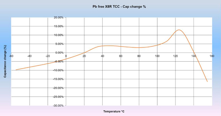 Le centre de recherche et développement de Knowles Capacitors a accumulé un volume considérable de données de test de fiabilité, afin de vérifier que ce nouveau diélectrique atteigne voire dépasse, toutes les caractéristiques de fiabilité et de qualité nécessaires. Le TCC (variation de la capacité avec la température) du matériau répond également aux spécifications X8R.