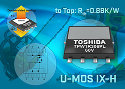 Toshiba Electronics Europe (TEE) étend sa gamme de MOSFET U-MOS IX-H haut-rendement, avec un dispositif canal-N en boîtier "DSOP Advance" à refroidissement double-face.