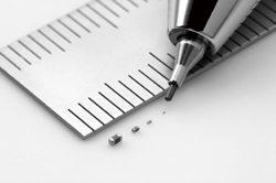 C’est pour répondre à cette nécessité qu’a été conçue la nouvelle gamme GRM011 de Murata, en passant du précédent format 0402M (0,4 x 0,2 mm), déjà connu pour être le plus petit du monde, au nouveau 0201M (0,25 × 0,125 x 0,25 mm (HxLxP)). En codage EIA, cela correspond au format 008004.