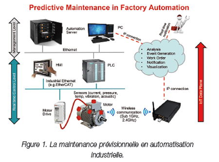 Communications. La maintenance prévisionnelle consiste à capter, prétraiter et transmettre les états critiques en temps réel : les communications doivent fonctionner avec un signal rapide et une latence minimale, spécifiées par des standards industriels pour de nombreuses applications. Le réseau devra permettre des communications filaires et/ou sans fil avec les capteurs et fournir des moyens de reporting auprès des centres de commande d’automatisation industrielle ou des opérateurs humains au moyen d’une interface hommemachine et du cloud. Les réseaux industriels actuels utilisent des standards très variés, et divers protocoles peuvent être utilisés dans un même atelier. Afin de simplifier la mise en oeuvre, les communications de maintenance prévisionnelle devraient être compatibles avec les standards les plus courants.