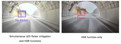 Au cours des dernières années, l’utilisation des LED s’est généralisée pour les panneaux de signalisation routière ainsi que les composants automobiles tels que les phares et les feux de freinage. Une autre tendance impose aux caméras automobiles d’être en mesure de capturer des images de haute qualité avec une large gamme dynamique, même dans des situations de contraste extrême, comme lors de l’entrée ou de la sortie de tunnels pendant la journée. Ce capteur d’image utilise simultanément une atténuation du scintillement des LED ainsi que des fonctionnalités HDR pour faire face à ce type de situation, ce qui permet une reconnaissance plus précise dans les divers environnements de trafic que les conducteurs rencontrent réellement.
