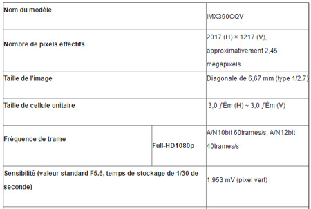 Ce capteur d’image est équipé d’une fonction d’atténuation du scintillement des LED qui réduit cet effet parasite lors de la prise des vue de panneaux à LED destinés à la signalisation et au trafic, ainsi que d’une fonction HDR caractérisée par une large gamme dynamique de 120 dBii. Le IMX390CQV est le premieri capteur de l’industrie capable simultanément d’atténuer le scintillement des LED et de capturer des images en HDR, une capacité rendue possible grâce à l’originalité de la structure de pixels et de la méthode d’exposition toutes deux propres à Sony. Il offre également des performances de haute sensibilité permettant de produire des images couleur de haute qualité, même dans des conditions de luminosité aussi basses que 0,1 lux, ce qui équivaut au clair de lune.