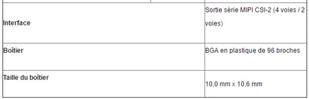 Principales spécifications