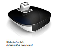 Pour connecter le réseau local WiFi à Internet, il suffit de brancher un modem USB sans fil 3G/HSPA sur le GlobeSurfer X•1. Ce dernier présente en outre un second port USB permettant d’ajouter des fonctionnalités sans fil avancées, telles qu’une connectivité Print Server ou File Server. Ce dispositif totalement plug & play permet ainsi à tous les membres de la famille de partager une imprimante ou d’accéder à du contenu à partir d’un serveur de médias, tout en bénéficiant d‘une connexion haut débit sans fil à Internet.