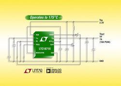 Analog Devices, Inc, qui a acquis récemment Linear Technology Corporation, annonce le LTC1871X, un contrôleur en mode courant, élévateur, flyback ou SEPIC, à large plage de tension d’entrée, contrôlant un MOSFET canal N de puissance et requérant peu de composants externes. Conçu pour des applications de basse à moyenne puissance, il élimine le besoin en résistance de mesure de courant (RSENSE) en se servant de la résistance à l’état passant du MOSFET de puissance, optimisant ainsi le rendement. La conception du LTC1871X est optimisée pour les environnements à température élevée, jusqu’à 175°C.