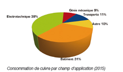 Les 39% de la consommation mondiale de cuivre sont destinés aux applications dans les domaines de l’électricité et de l’électronique.