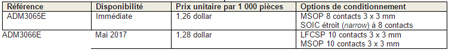 Analog Devices, Inc., annonce la disponibilité de deux nouveaux émetteurs-récepteurs RS-485/RS-422 de débit 50 Mbits/s et destinés aux environnements difficiles tels que l’automatisation industrielle, le contrôle moteur, le militaire et l’avionique. Référencés ADM3065E et ADM3066E, ces émetteurs-récepteurs montés en boîtiers compacts allient une protection contre les décharges électrostatiques (ESD) conforme à la norme CEI 61000-4-2 Level 4, des échanges de données à haut débit, une compatibilité logique 1.8V en entrée/sortie (ADM3066E) et un fonctionnement dans la plage de température industrielle. Ces fonctionnalités assurent aux concepteurs une flexibilité optimale tout en simplifiant la mise en œuvre et en améliorant les performances des communications au standard RS-485.
