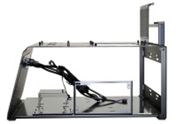 Avec le kit de mise à jour T70-1, les utilisateurs peuvent ajouter des panneaux latéraux à la table, chacun permettant d’installer un radiateur de 240mm ou 280mm avec un filtre à poussière amovible. Le kit comprend aussi un panneau arrière, avec un emplacement supplémentaire en 120mm et 140mm pour un ventilateur en extraction, ainsi qu’un ensemble supérieur / avant transparent qui se fixe magnétiquement afin de complètement enfermer la carte mère et de simuler un boitier classique, plus représentatif des utilisateurs généralistes – un avantage non négligeable pour les testeurs. Chaque panneau est modulaire et peut aisément s’enlever, permettant aux utilisateurs de passer rapidement d’un mode à un autre.