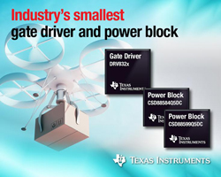 Texas Instruments (TI) présente aujourd’hui deux nouveaux portefeuilles de composants permettant de réduire la taille et le poids des applications de commande de moteur. Utilisés ensemble, les attaques de grille DRV832x pour applications de commande de moteur sans balais CC (BLDC) et les blocs de puissance CSD88584/99 NexFET™ ne requièrent que 511 mm2 sur la carte moitié moins que les produits concurrents.