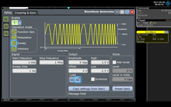 Les utilisateurs peuvent utiliser le générateur intégré via le large écran tactile. Un affichage graphique indique clairement tous les paramètres relatifs aux formes d’ondes à générer. Les formes d’ondes arbitraires peuvent également être issues d’une des voies de l’oscilloscope. Par exemple, des télégrammes du bus acquis peuvent être copiés dans le générateur de formes d’ondes arbitraires simplement en appuyant sur un bouton..