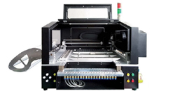 Moindre coût ne signifie pas qualité à minima. Chaque machine est équipée d’un système de vision à double optique, de nombreux chargeurs (bande, stick et plateau Jedec), possède une cadence de 5000 à 10 000 cps/h selon le type de composants, elle est fournie avec un logiciel complet préinstallé sur un PC complet livré de série, et comprend bien d’autres fonctionnalités.
