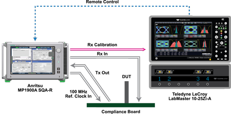 L’oscilloscope LabMaster 10-25Zi-A offre la largeur de bande de 25 GHz nécessaire pour tester un émetteur PCIe Gen4 et calibrer un test de récepteur, aussi il peut être mis à niveau en termes de largeur de bande, afin de supporter les standards de communication fonctionnant à 32 Gbit/s ou plus. Le LabMaster 10-25Zi-A, intégrant en option le prochain logiciel QPHY-PCIe4-Tx-Rx, réalise automatiquement tous les réglages et les tests d’émetteur, récepteur et égaliseur de liaisons PCIe Gen4, et ce conjointement au MP1900A d’Anritsu. Le débogage des interfaces PCI Express est simple et intuitif, grâce aux outils intégrés d’analyse du diagramme de l’œil et de la jitter, ainsi qu’au décodage PCI Express doté d’annotations de la forme d’onde et d’analyses.