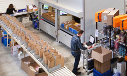En outre, l’avantage de la tour Jumper est de permettre la préparation de commandes en simultanée. Le plateau contenant les produits souhaités descend jusqu’à l’opérateur et est équipé d’un affichage LED indiquant précisément la zone de picking. Tous les produits demandés sont alors scannés avant d’être mis en colis les uns après les autres.