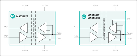 Les concepteurs peuvent profiter de communications robustes et améliorer la disponibilité opérationnelle des systèmes industriels, grâce aux MAX14878, MAX14879, et MAX14880, une famille de transcepteurs isolés pour réseau CAN (Controller Area Network, ou réseau local à contrôleur) 2,75 kV et 5 kV de Maxim Integrated Products, Inc.