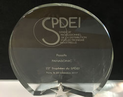 Panasonic Industry Europe est fier d’annoncer avoir remporté le Trophée du Meilleur fournisseur de composants passifs. La distinction, également obtenue par les colauréats TDK, Eaton, Kemet et Vishay, a été remise par le Syndicat Professionnel de la Distribution en Électronique Industrielle (SPDEI). Les Trophées du SPDEI, qui célébraient cette année leur 22e édition, ont été attribués suivant cinq critères : partenariat avec les distributeurs français ; innovation, prix, qualité et durabilité des produits ; rentabilité pour le distributeur ; ressources allouées pour assister le distributeur ; protection des designs. Sur les 120 fournisseurs nommés, 25 ont remporté un Trophée dans l’une des dix catégories de produits.