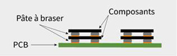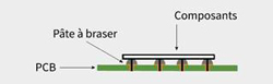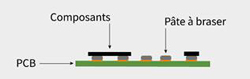 Le « Pin-in-paste » ou THR qui permet de poser de la pâte à braser adaptée à la pose de composants traversants.