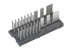 Les embases combinées puissance et signal « custom » sont aussi bien dotées de broches traversantes qu’adaptées à la technique de montage en surface (SMT) ; l’interface offre donc une plus grande fiabilité. Ce système à simple et double « plaquette de maintien » peut être personnalisé pour les applications spécifiques d’empilage de cartes, qui peuvent aussi comprendre les utilisations d’automates industriels.