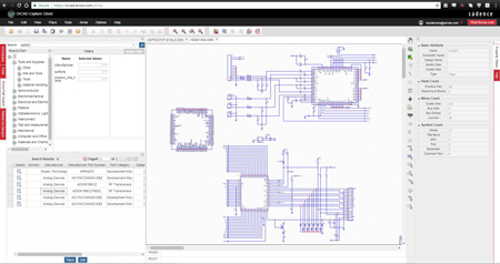 Dans l’environnement de conception basé sur le cloud, les concepteurs peuvent également choisir parmi les topologies de référence Arrow existantes, sélectionner des composants se trouvant dans la bibliothèque de pièces d’Arrow et générer une nomenclature complète, le tout en un seul flux continu. Ils peuvent également imprimer, partager et télécharger de nouvelles conceptions.