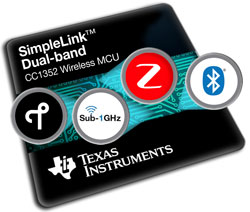 Multibande (bandes inférieures à 1 GHz, Bluetooth Low Energy, Thread et ZigBee) : microcontrôleurs sans fil CC1352R et CC1352P.
