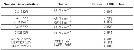 les nouveaux microcontrôleurs SimpleLink sont disponibles sur la boutique TI et auprès des distributeurs agréés. Le tableau ci-dessous indique le type de boîtier et le tarif pour chaque modèle.