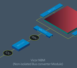 Le 2317 NBM convertit la tension de 12 V à 48 V avec un point de rendement optimal supérieur à 98 %, 750 W en continu et 1 kW en puissance crête, le tout dans un boîtier SM-ChiP à monter en surface aux dimensions de 23 x 17 x 7,4 mm. Le convertisseur NBM (NBM2317S14B5415T00) offre une solution complète qui permet de se passer de filtre d’entrée externe et de condensateurs volumineux. En commutant à 2 MHz avec la commutation ZVS et ZCS, le NBM offre une faible impédance de sortie et une réponse transitoire rapide (de l’ordre des MHz) aux charges dynamiques. Le module NBM intègre la capacité de remplacement à chaud et de limitation du courant d’appel.