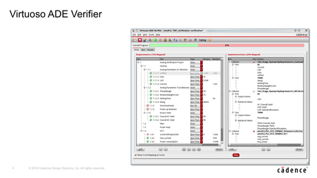 Certaines des principales améliorations apportées à la plateforme Virtuoso 2018 optimisent les capacités de la plateforme primée Virtuoso System Design Platform lancée l’année dernière. La nouvelle version de cette plateforme permet à présent aux ingénieurs système de modifier et d’analyser de manière transparente les systèmes hétérogènes les plus complexes. Par ailleurs, les ingénieurs de différentes disciplines (boitier, photonique, circuits analogiques et RF) peuvent travailler sur une unique plateforme et utiliser la totalité des applications de conception de confiance réunies sur la plateforme Virtuoso.