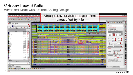 Cette nouvelle mouture de la plateforme Virtuoso intègre des méthodologies pour technologies avancés innovantes, qui accélèrent les projets réalisés dans les nœuds de 22 à 5 nm. En collaborant avec les fondeurs de pointe, ses clients et plusieurs partenaires de son écosystème, Cadence a développé des technologies avancées capables de gérer automatiquement la complexité des processus grâce à des méthodologies innovantes permettant aux ingénieurs de se concentrer sur leurs intentions de conception. En ce qui concerne la conception et l’analyse des circuits, des algorithmes statistiques avancés ciblant spécifiquement les conceptions en technologie FinFET permettent de détecter suffisamment les variations de circuits, ce qui réduit les délais d’analyse des variations de conception d’environ 20 %.