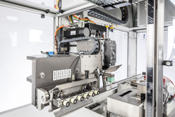 La possibilité de déplacer un robot à bras articulé et les pinces de préhension associées avec une liberté totale dans l’espace de la cellule augmente les possibilités et maximise l’utilisation du volume et le choix des processus. Jusqu’à quatre combinaisons de préhenseur / masque de brasure peuvent être stockées dans un système entièrement automatisé, ce qui permet de traiter un grand nombre de variantes de produits.