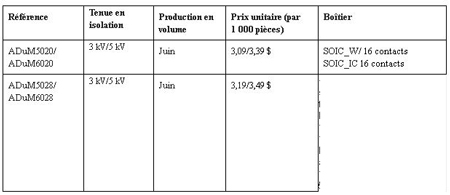 Principales caractéristiques des convertisseurs ADuM5020/6020 et ADuM5028/6028